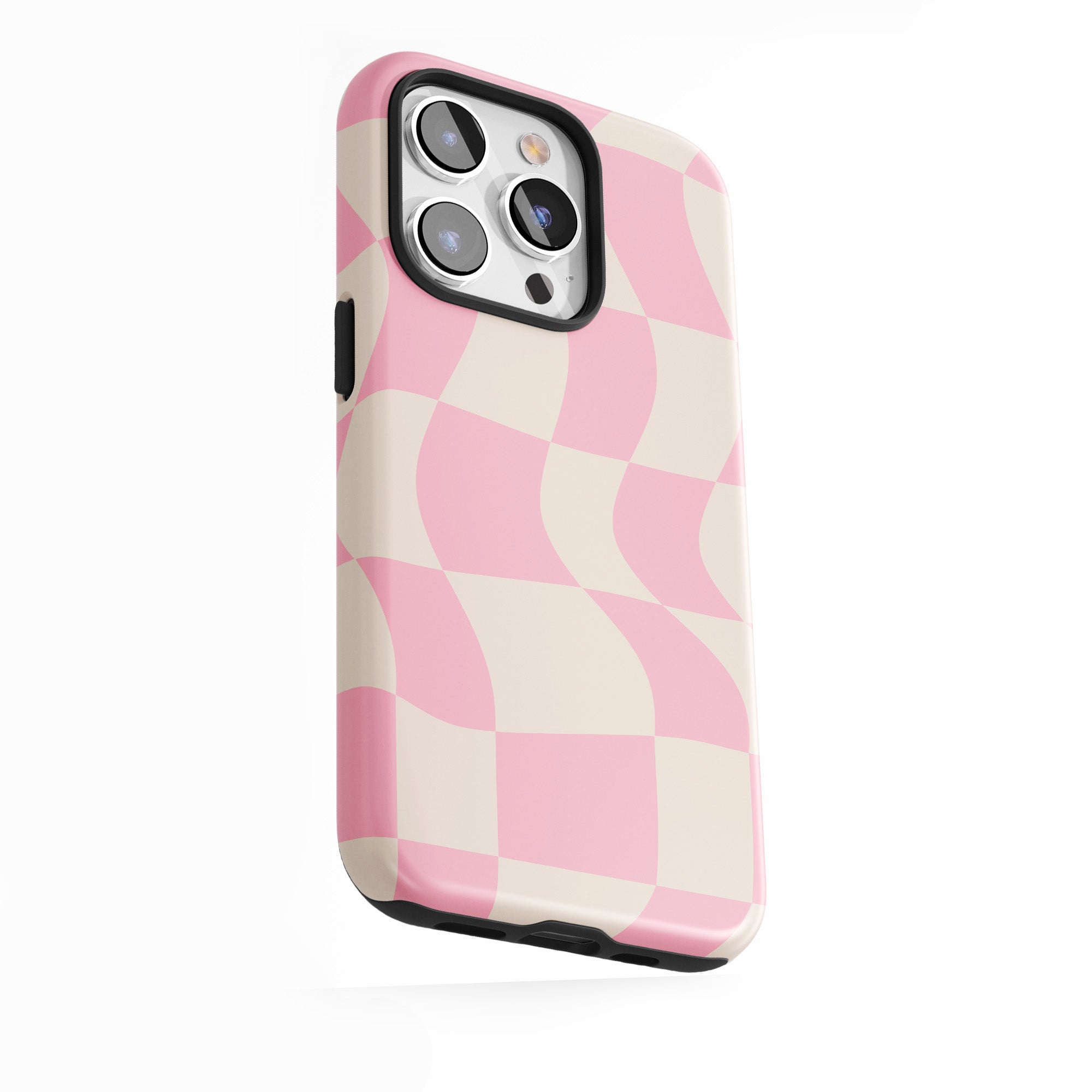 Distorsion en damier rose-bleu.
