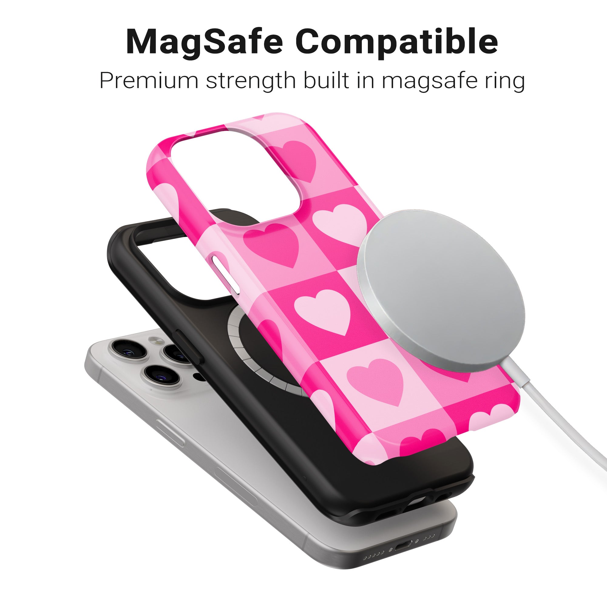 Damier fusionné avec des coeurs roses.