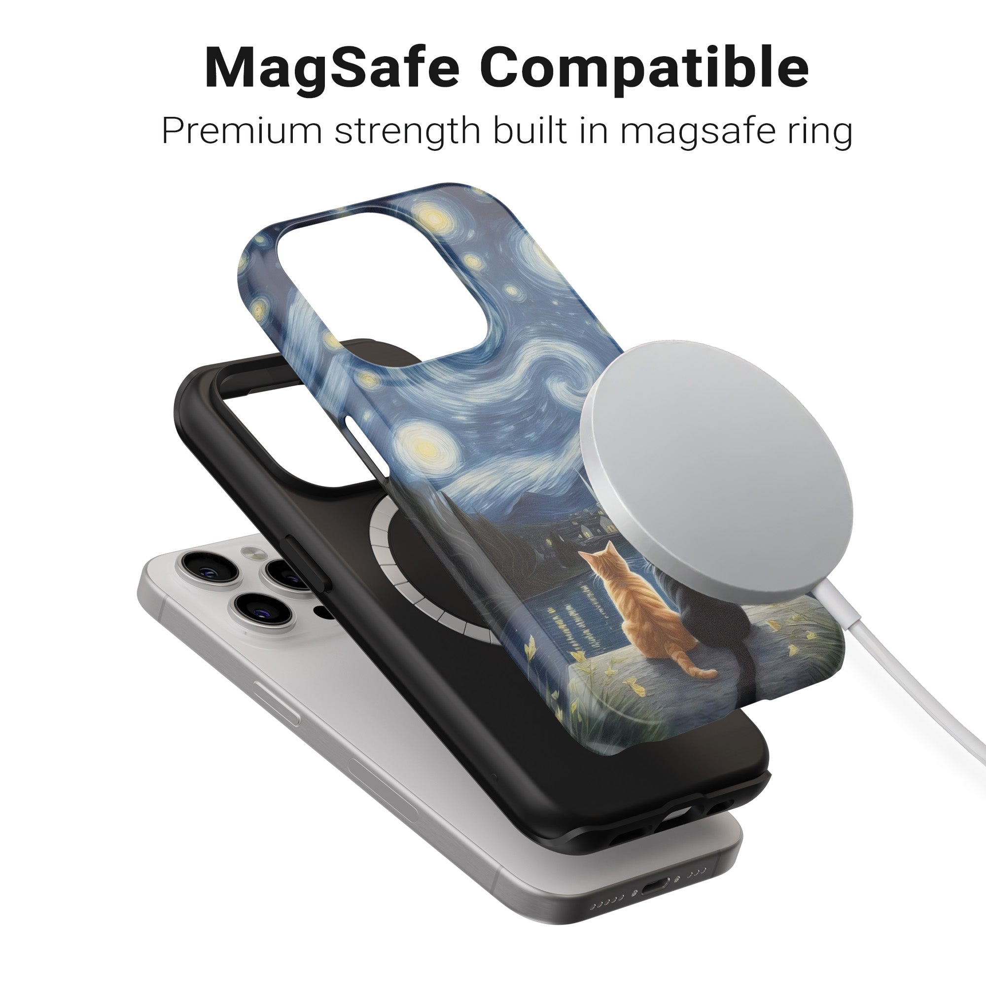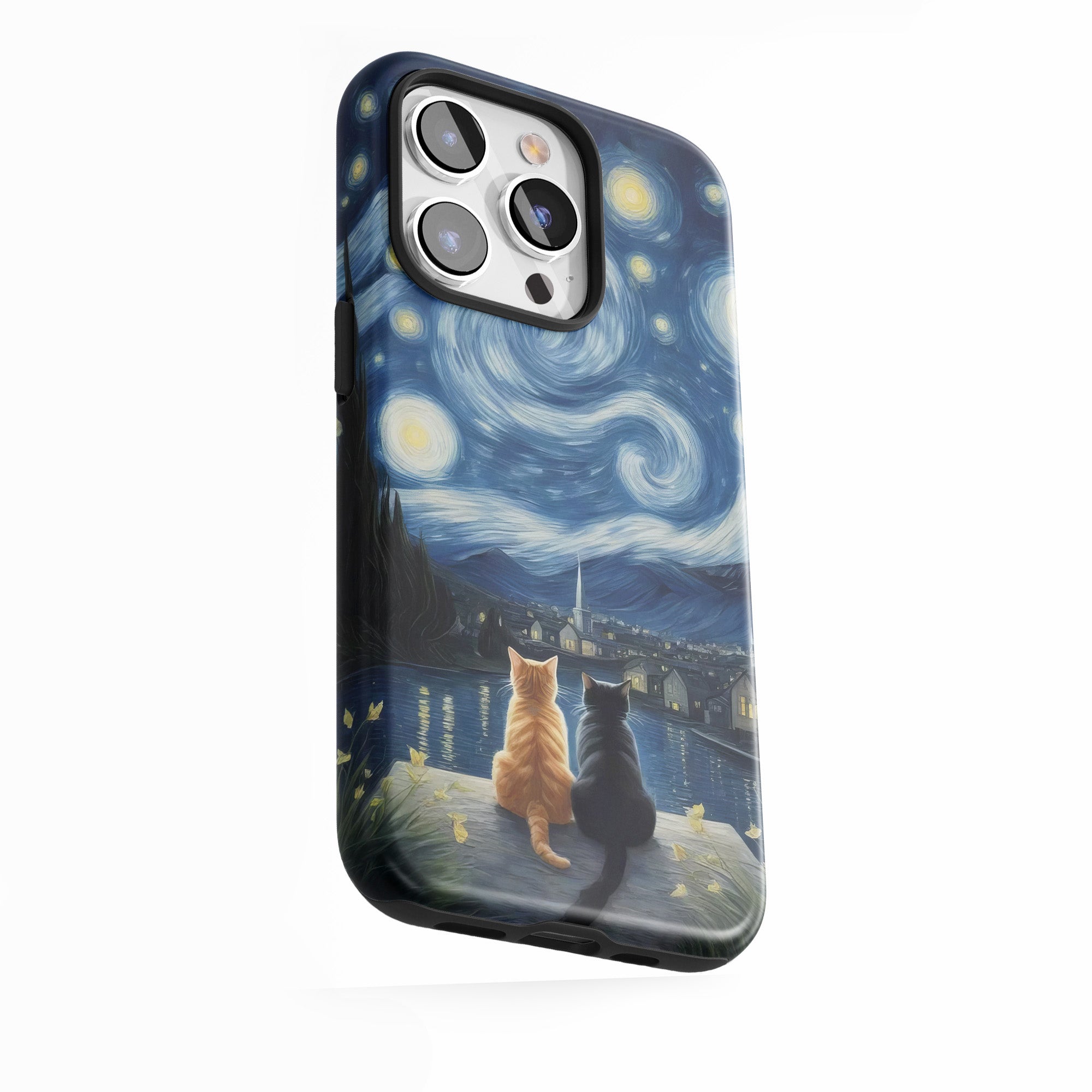 Deux chats dans la nuit étoilée.